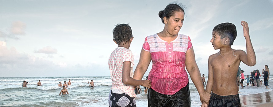 The most memorable impressions of a trip are those things, of course, that are different from things at home. And swimming customs in Sri Lanka (or in India as well) are distinctive, indeed. First of all there is a lot of textile involved. Women and also some men use to go into the water in full clothing. So, for the uninformed, there are questions: Is it the clothes that are worn on this day anyway? Is there special bathing suit everyday clothes, is it discarded clothes? Won’t it be cold or unpleasant, after all, when, let’s say, sitting wet in a full bus? And while on jam-packed beaches in the western world people are crowding at the beach outside the water, in Sri Lanka the space in the water itself seems to become scarce. A sporty swimming culture is rather unknown, it is about the fun of splashing, personal hygiene or even religious-ritualistic purgation.